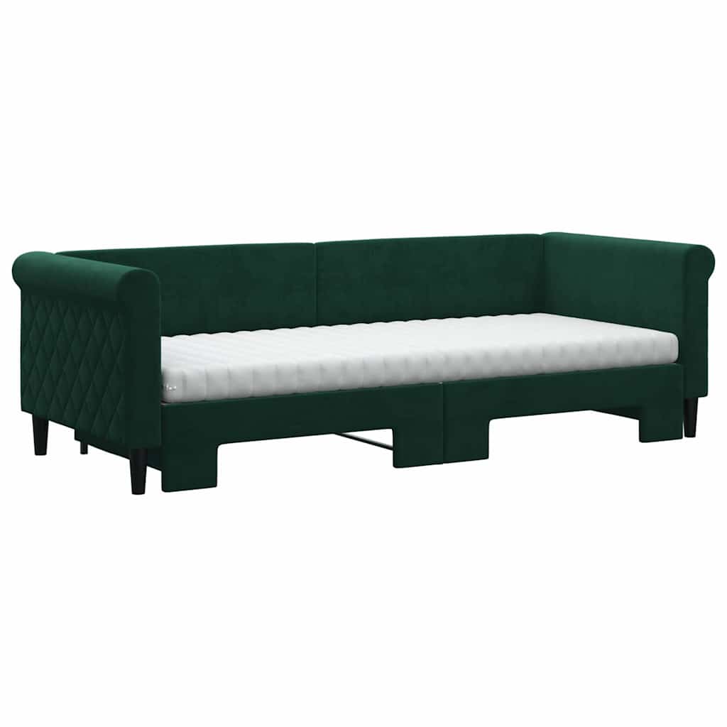 Καναπές Κρεβάτι Συρόμενος Σκούρο Πράσινο Βελούδινος Στρώματα