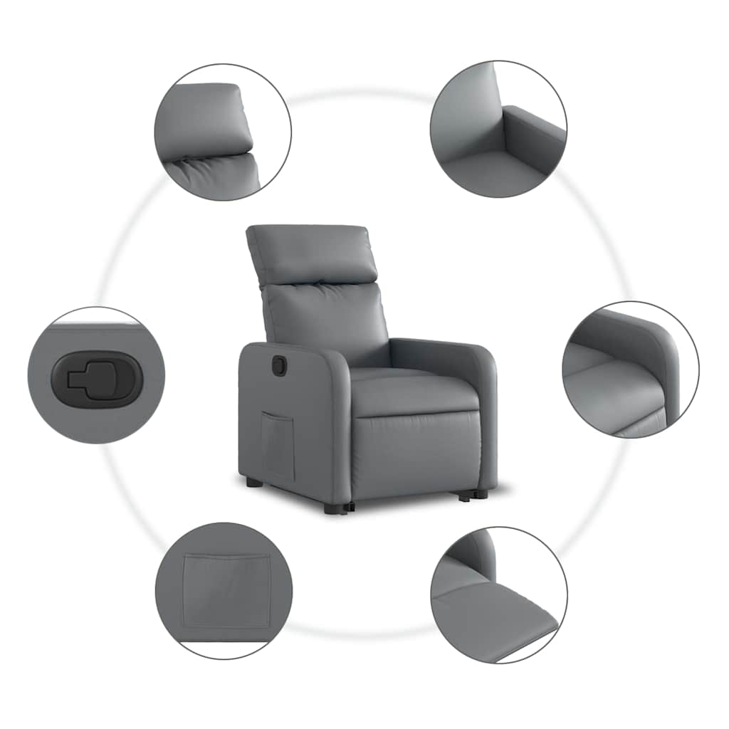 Πολυθρόνα Ανακλινόμενη με Ανύψωση Γκρι Συνθετικό Δέρμα