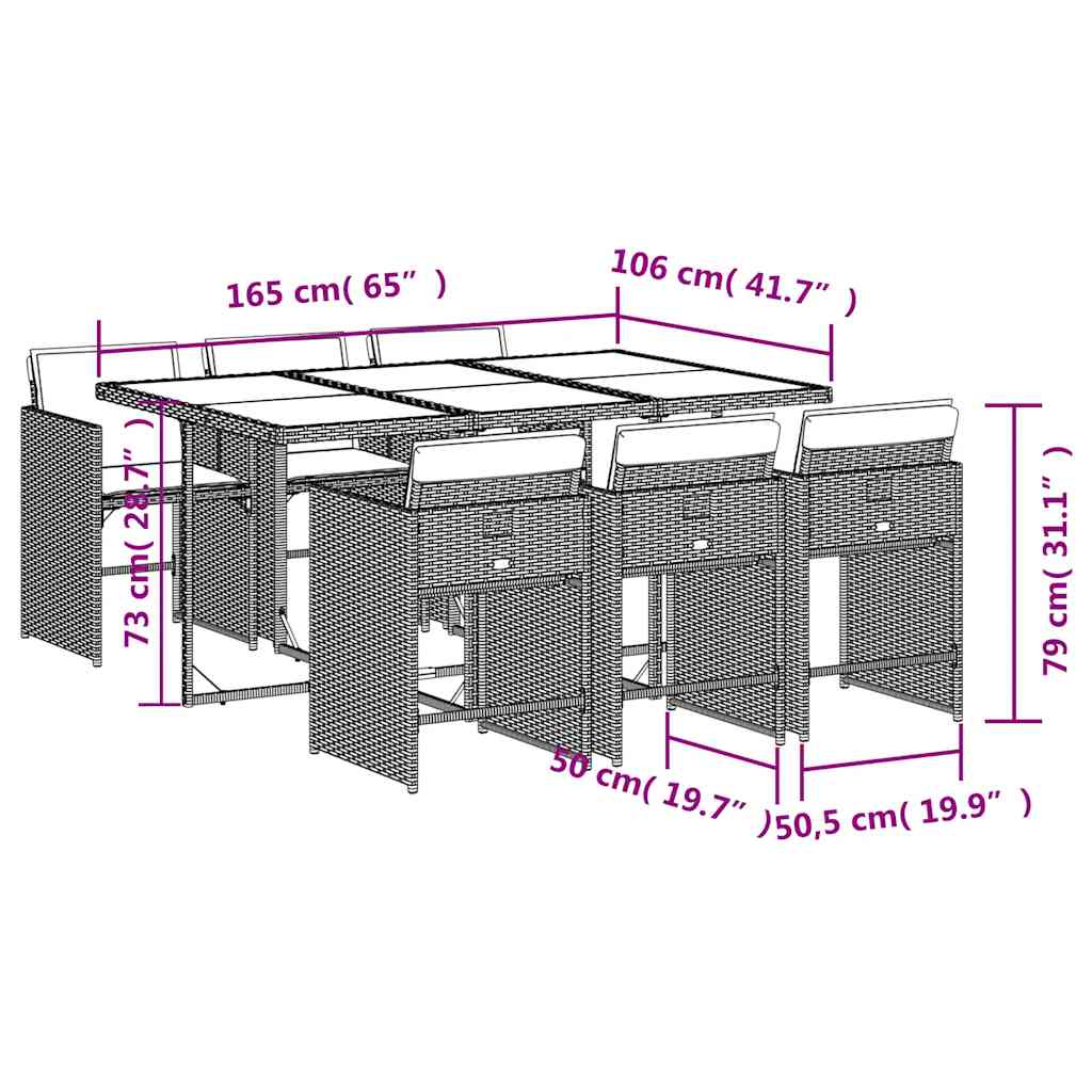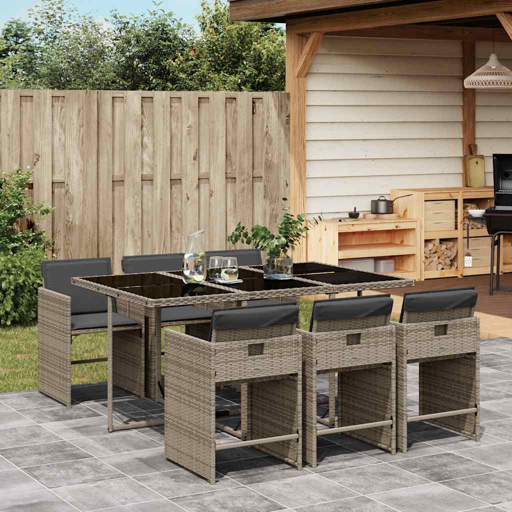 Σετ Τραπεζαρίας Κήπου 7 τεμ. Γκρι Συνθ. Ρατάν με Μαξιλάρια