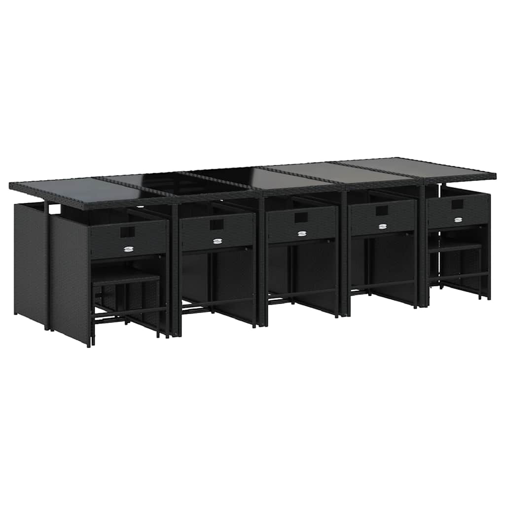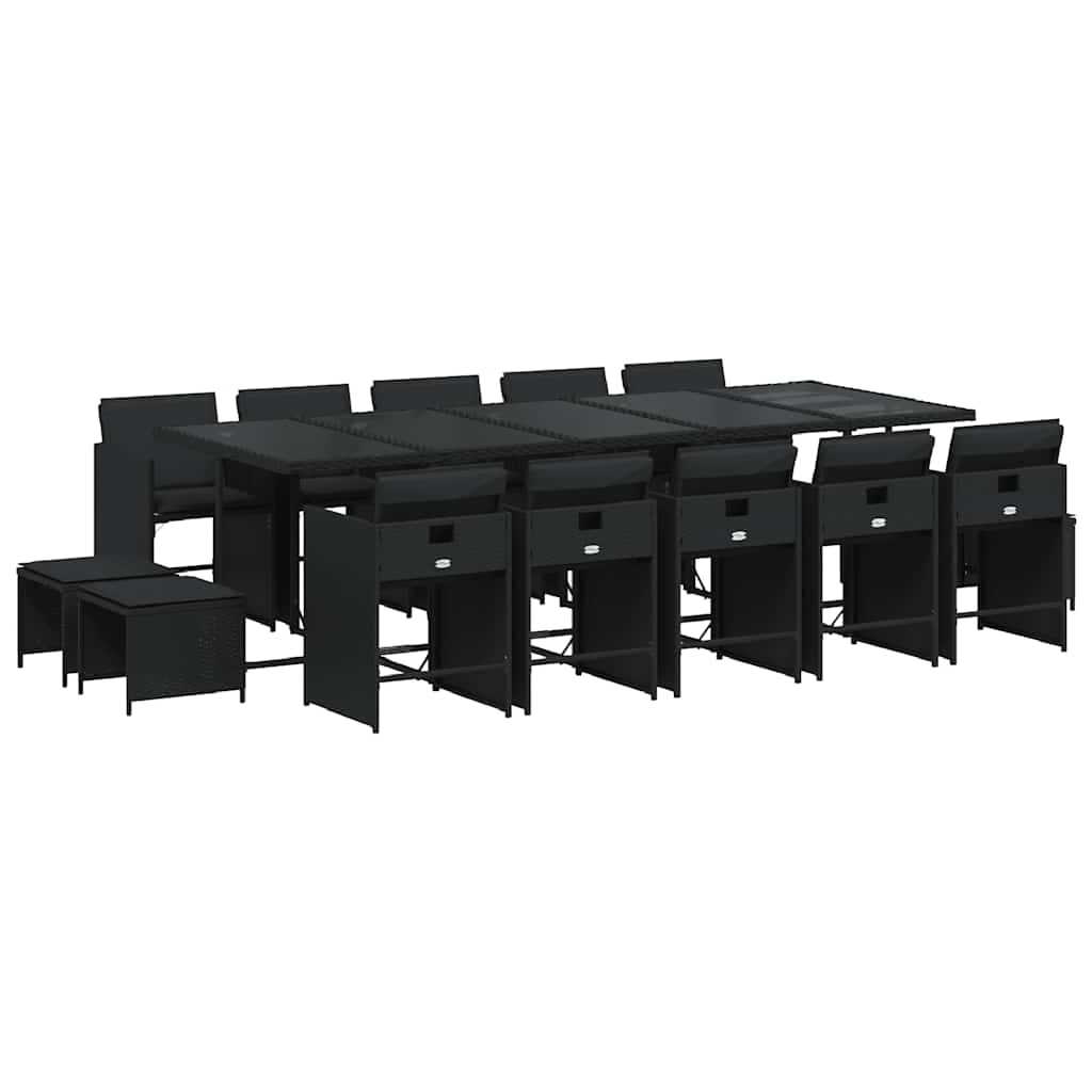 Σετ Τραπεζαρίας Κήπου 15 τεμ Μαύρο από Συνθ. Ρατάν με Μαξιλάρια
