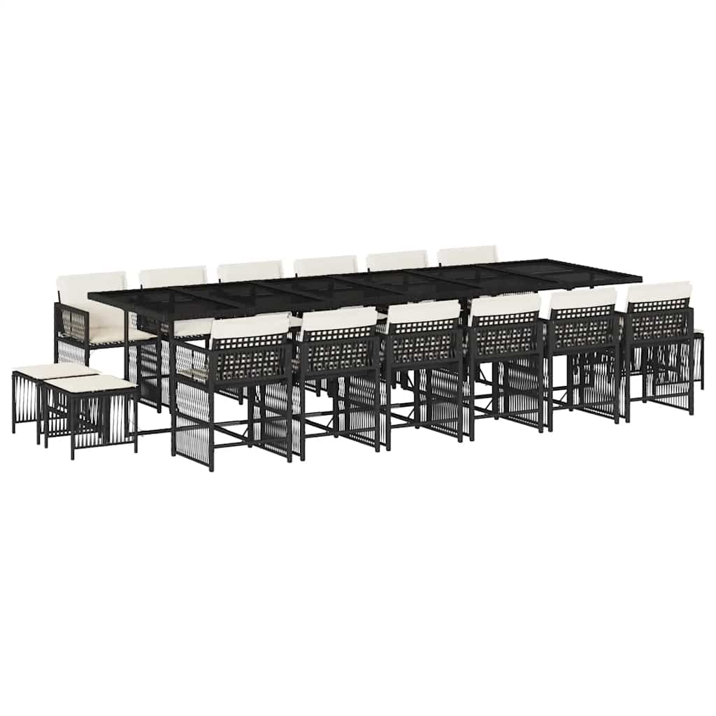 Σετ Τραπεζαρίας Κήπου 17 τεμ Μαύρο από Συνθ. Ρατάν με Μαξιλάρια