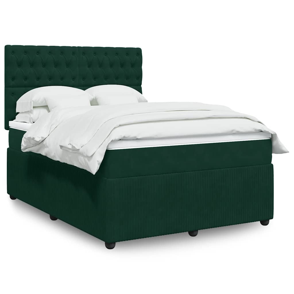 Κρεβάτι Boxspring με Στρώμα Σκούρο Πράσινο 140x200εκ. Βελούδινο