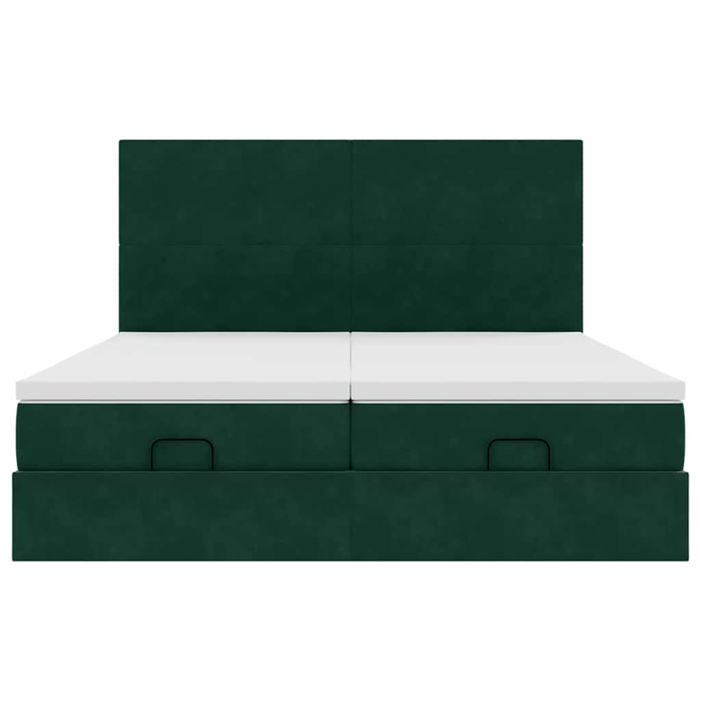 Οθωμανικό κρεβάτι με στρώματα&LEDs Dark Green 180x200cm Velvet