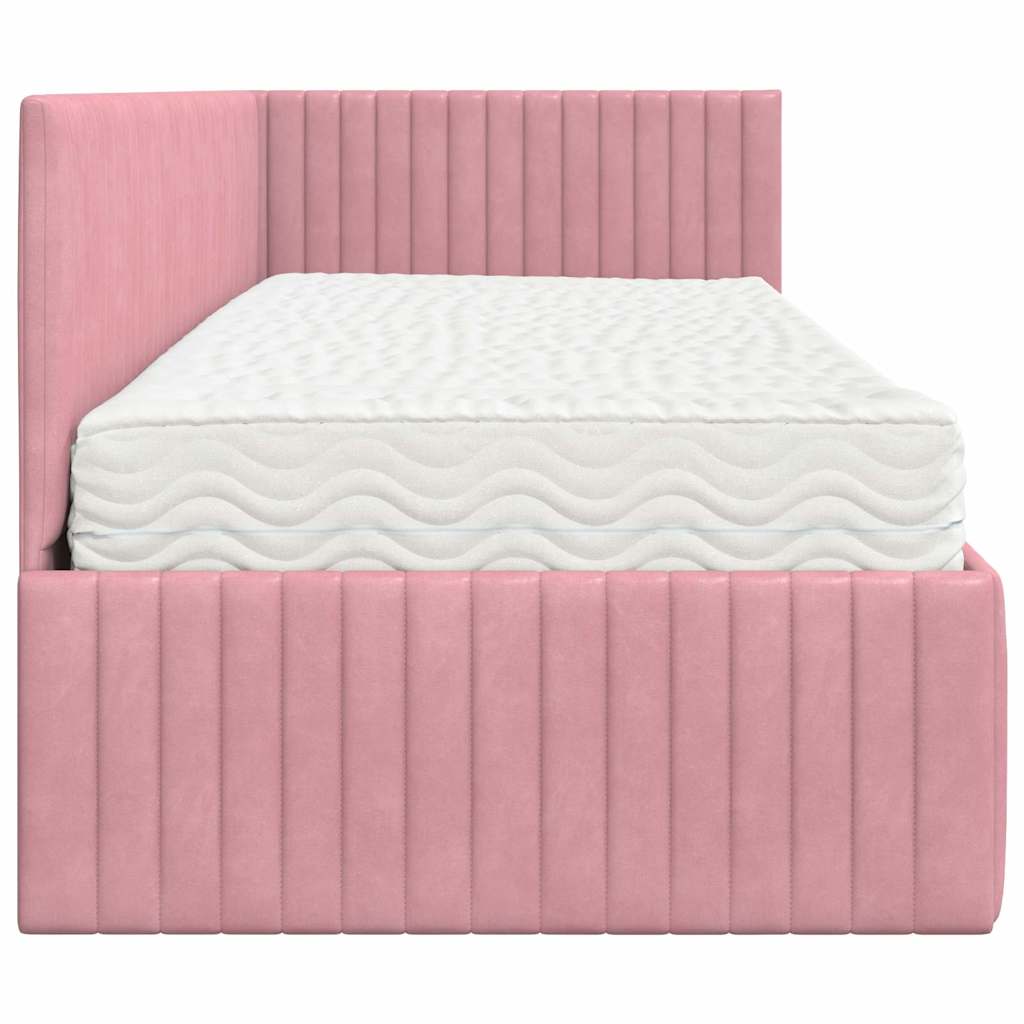Κρεβάτι γωνίας με στρώμα με κεφαλάρι 2 pcs Γκρι Βελούδο