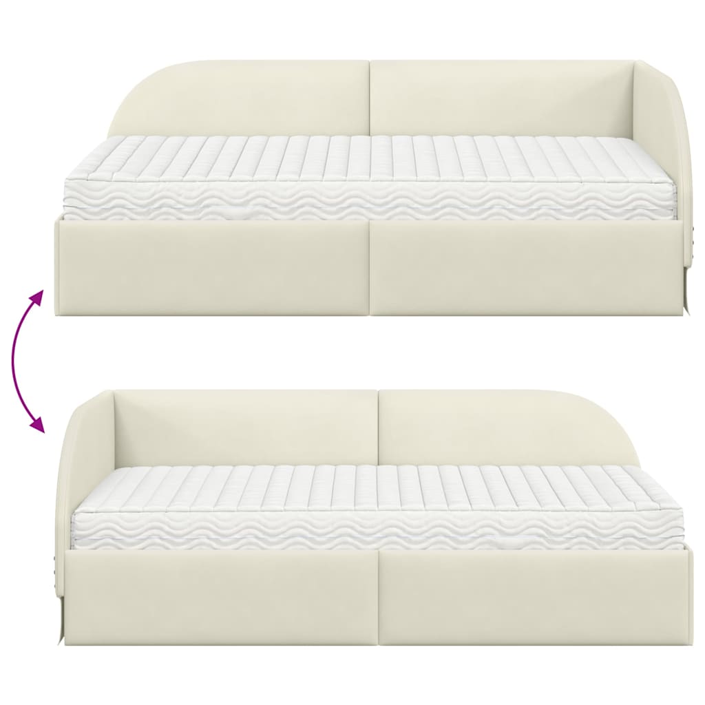 Κρεβάτι γωνίας με στρώμα με κεφαλάρι 2 pcs Κρεμ Βελούδο