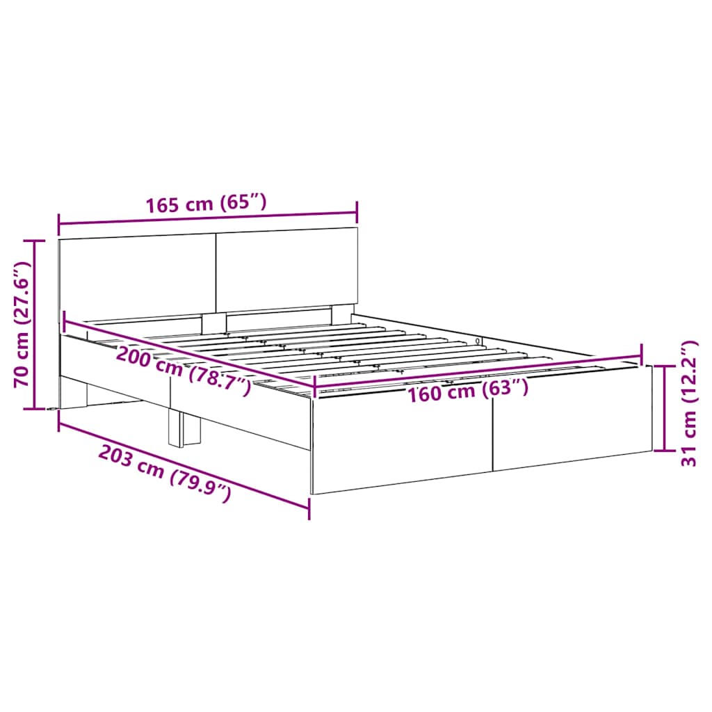 Σκελετός Κρεβατιού Μαύρη Οξυά 160 x 200 cm Επεξεργασμένο ξύλο
