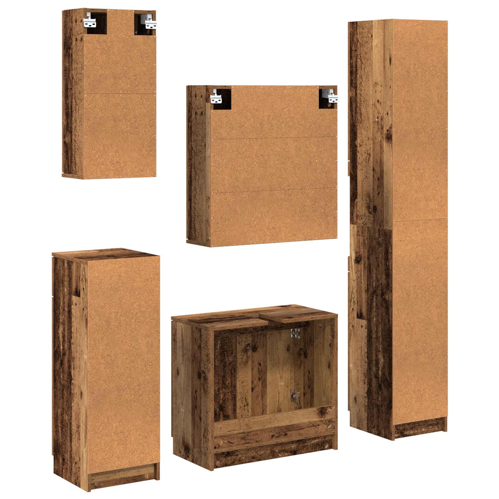 Σετ Επίπλων Μπάνιου με ράφι 5 pcs Παλιό ξύλο Επεξεργασμένο ξύλο